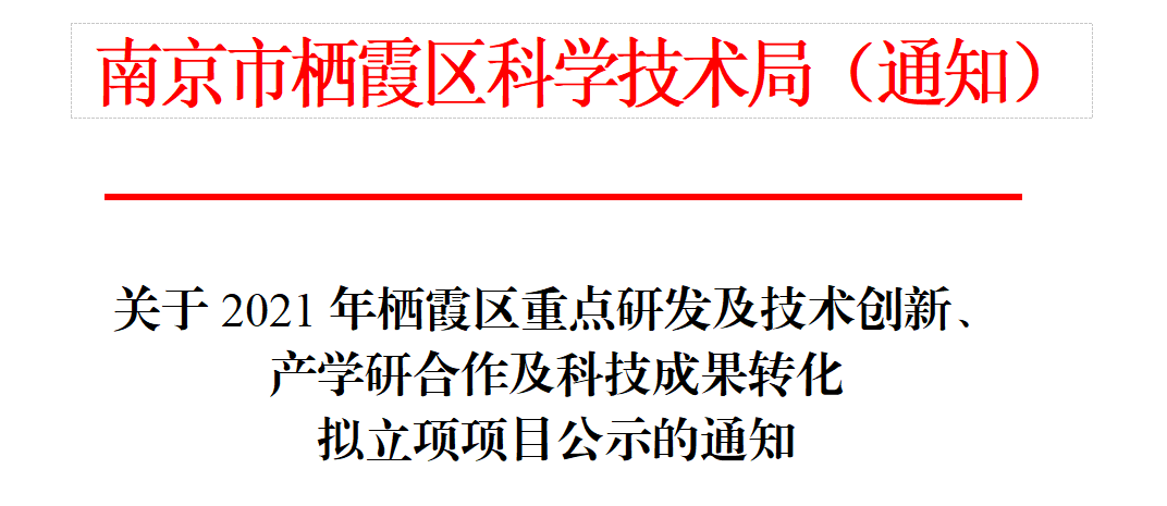 我司成功申報2021年棲霞區(qū)科技成果轉化項目