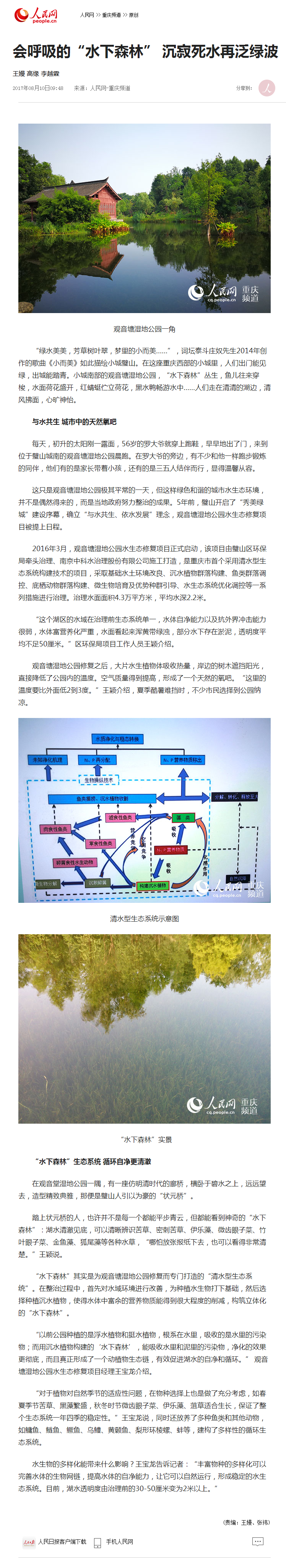 ?璧山有片“水下森林”讓水能“呼吸”更清澈