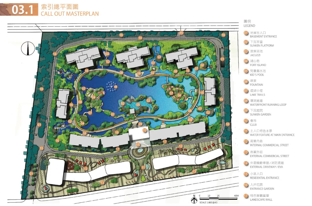 呼應(yīng)場(chǎng)地東北方向的北湖景觀,整個(gè)場(chǎng)地的空間劃分以水為脈,以島為居,通過(guò)蜿蜒變化的棧道將分散在水中的島嶼相連,形成一島一世界,一步一美景的水岸島居景觀。景觀設(shè)計(jì)秉承讓建築、自然、湖景和諧相融的理念,營(yíng)造島上郁郁蔥蔥。春有百花秋有月,聞之有落英繽紛,端之則繁花似錦,縱享一座城的島居愜意人生。