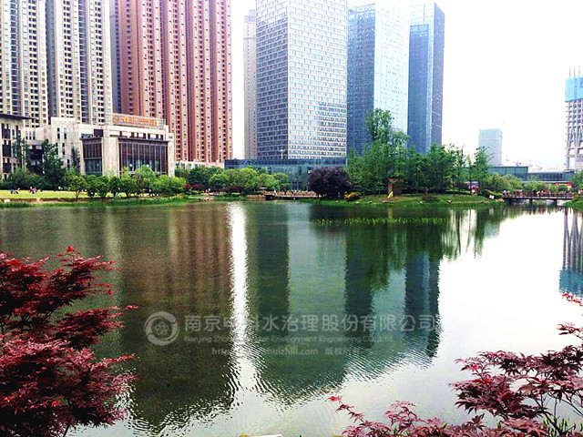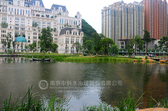 南京中科水治理股份有限公司于2013年12月10日開始,對景觀湖進行清水型生態(tài)系統(tǒng)構(gòu)建工程,實施的主要內(nèi)容有:水體透明度提升、挺水植物、沉水植物群落構(gòu)建,魚類、大型底棲動物群落構(gòu)建,水質(zhì)指標(biāo)監(jiān)測,及養(yǎng)護管理。2014年2月17日,清水型生態(tài)系統(tǒng)構(gòu)建工程較計劃提前1個月完工并通過驗收。至今,主要水質(zhì)指標(biāo)仍達(dá)到《國家地表水環(huán)境質(zhì)量標(biāo)準(zhǔn)》GB3838-2002Ⅱ類水標(biāo)準(zhǔn),超過合同規(guī)定的 Ⅳ類水要求,水質(zhì)清澈見底,水生動植物多樣性提高,有效抑制了水體富營養(yǎng)化趨勢。
