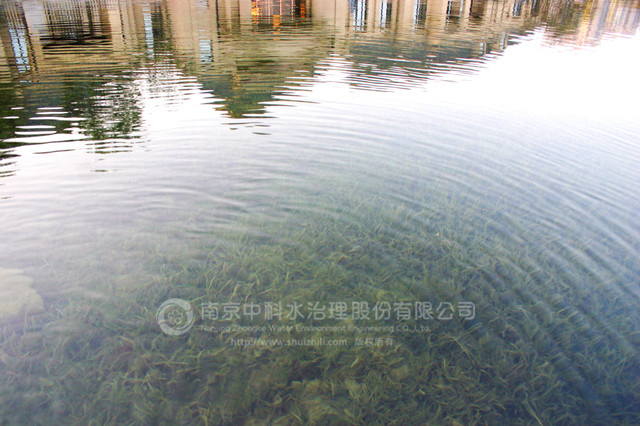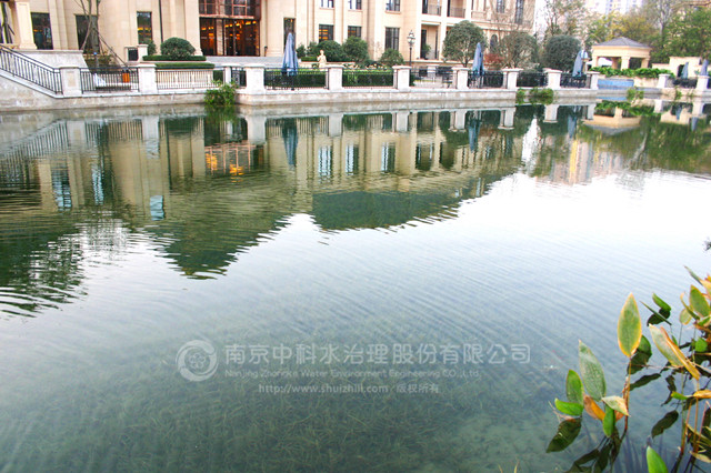 復(fù)地御香山二期景觀湖為新開挖人工湖體。業(yè)主要求通過建立健康、穩(wěn)定、經(jīng)濟的清水型生態(tài)系統(tǒng)來保護湖水水質(zhì),實現(xiàn)長效景觀性。水生態(tài)工程施工時間為2012年3月10日至5月30日??⒐ず?,復(fù)地御香山二期景觀湖水質(zhì)主要指標達到 《國家地表水環(huán)境質(zhì)量標準》GB3838-2002 Ⅱ 類標準,常年水體透明度在1.7米以上清澈見底,生態(tài)系統(tǒng)健康穩(wěn)定。