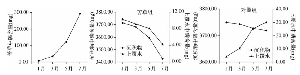 苦草對(duì)水體營(yíng)鹽的去除率隨生物量的增加不斷增大,當(dāng)生物量達(dá)到 2380.00g時(shí),去除率放緩??嗖莞瘮♂尫诺牧状蟛糠直坏啄辔?,少量進(jìn)入水體。草腐敗分解具有階段性,前36d分解迅速,以后分解速率顯著下降。