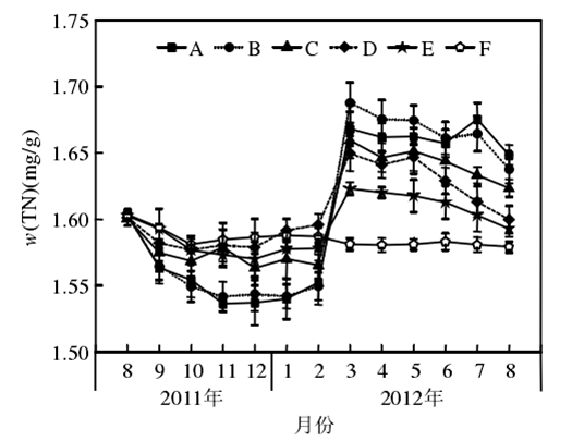 在富營(yíng)養(yǎng)狀態(tài)下(N:4 mg/ L;P:0.2 mg/ L)不同比例硝態(tài)氮(NO-3-N)和尿素氮(Urea-N)對(duì)苦草(Vallisneria atans)的生理影響:隨著培養(yǎng)液中尿素氮比例的上升,生物量和硝酸還原酶活性,依次降低;POD和脲酶活性先升高后降低.研究表明,添加一定量的硝態(tài)氮可以促進(jìn)苦草的生長(zhǎng),但當(dāng)環(huán)境中尿素含量逐漸增加時(shí)會(huì)對(duì)苦草產(chǎn)生一定的脅迫作用,影響苦草的正常生長(zhǎng).從本實(shí)驗(yàn)研究結(jié)果綜合來(lái)看,硝態(tài)氮(NO-3-N)和尿素氮(Urea-N)對(duì)苦草產(chǎn)生脅迫影響的閾值比為1∶ 1.此時(shí)TN為4 mg/ L,NO-3-N和Urea-N均為2 mg/ L。