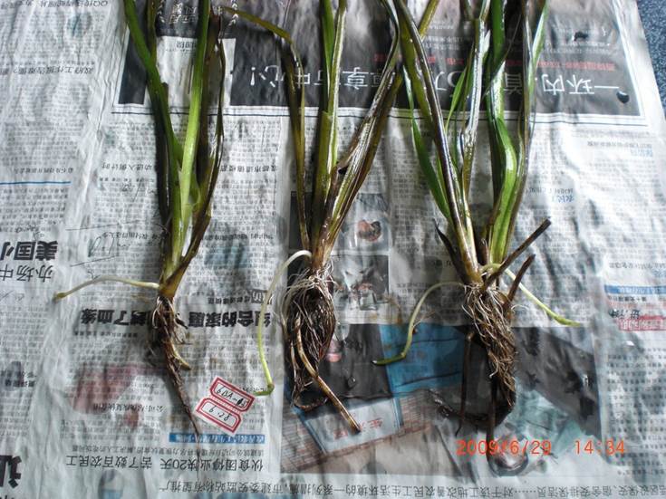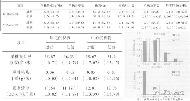 2、低氧對(duì)苦草根系的影響顯著,表現(xiàn)為根須變細(xì)且數(shù)量增加,根系活力明顯下降。