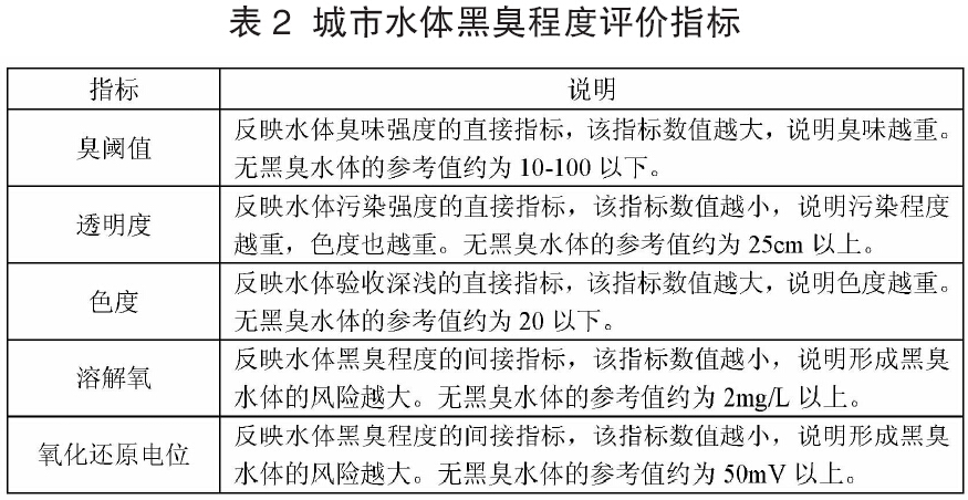 不同指標(biāo)對(duì)水體黑臭程度的指示作用及檢測(cè)方法如下表所示: