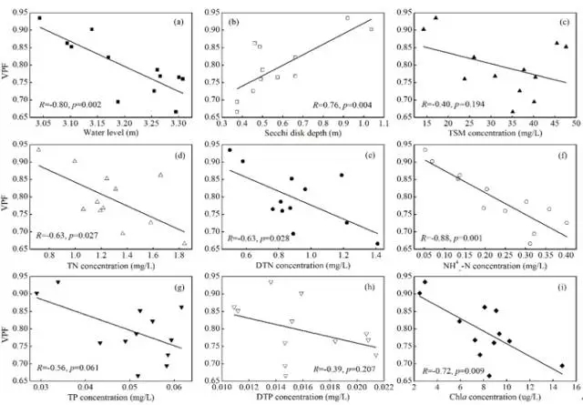 東太湖水生植物出現(xiàn)頻次與水環(huán)境參數(shù)間關系
